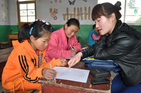 小雨点公益社的志愿者正在了解贫困儿童的心愿