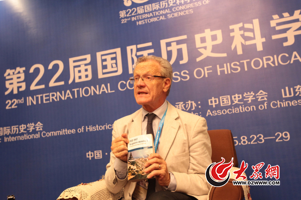 国际历史学会秘书长罗伯特·弗兰克接受记者专访。大众网记者 王长坤 摄
