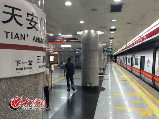 北京地铁1号线天安门东站,乘客少了很多,站台上显得空空荡荡。