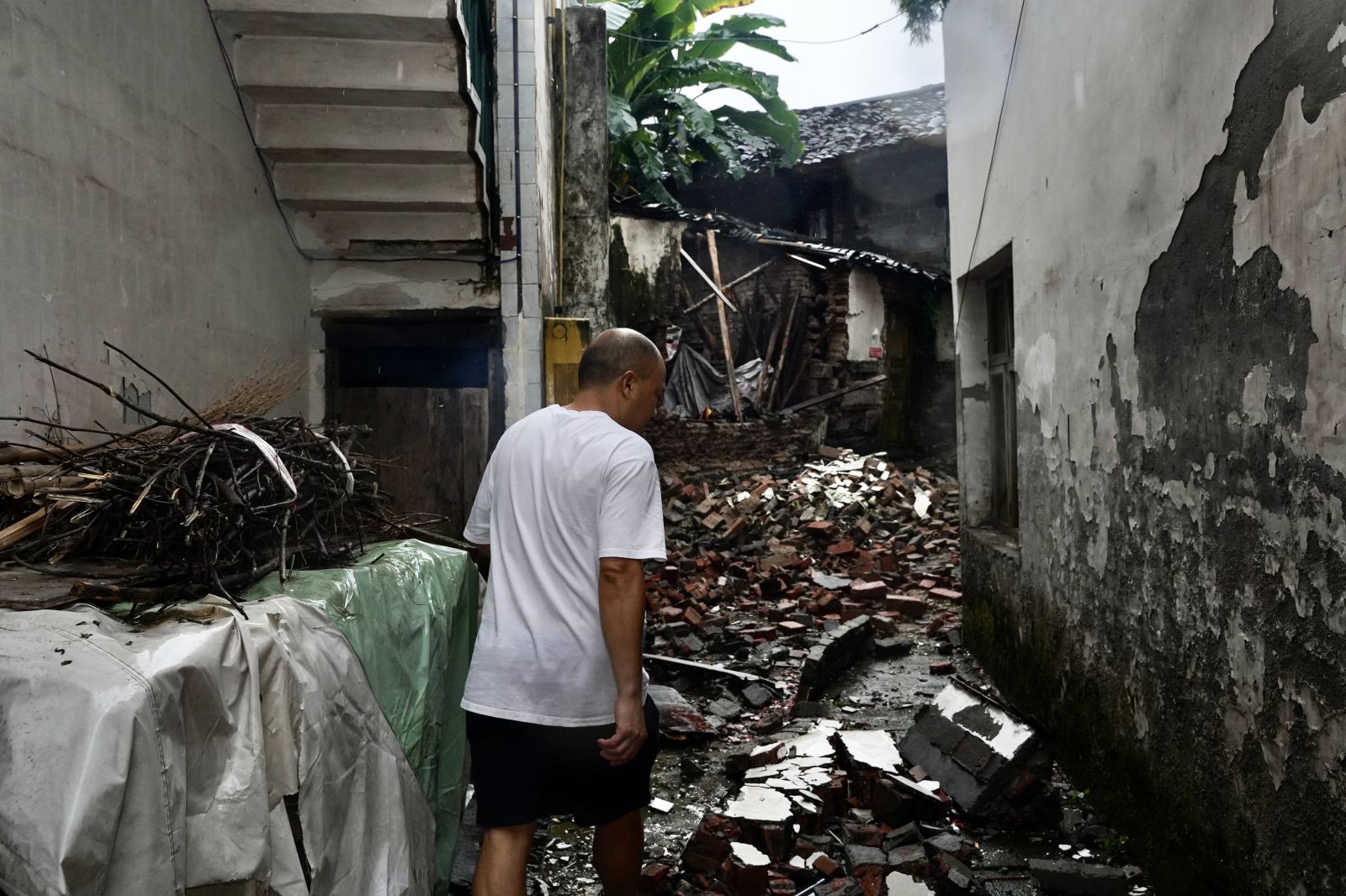 记者从泸县县城赶往嘉明镇的路上看到,多处居民住房受损。在泸县福集镇,救援人员正挨家挨户排查危房中的居民,并将他们带至临时安置点。福集镇大桥村党群服务中心的临时安置点已搭建起多顶临时安置帐篷,受灾群众前来避险。