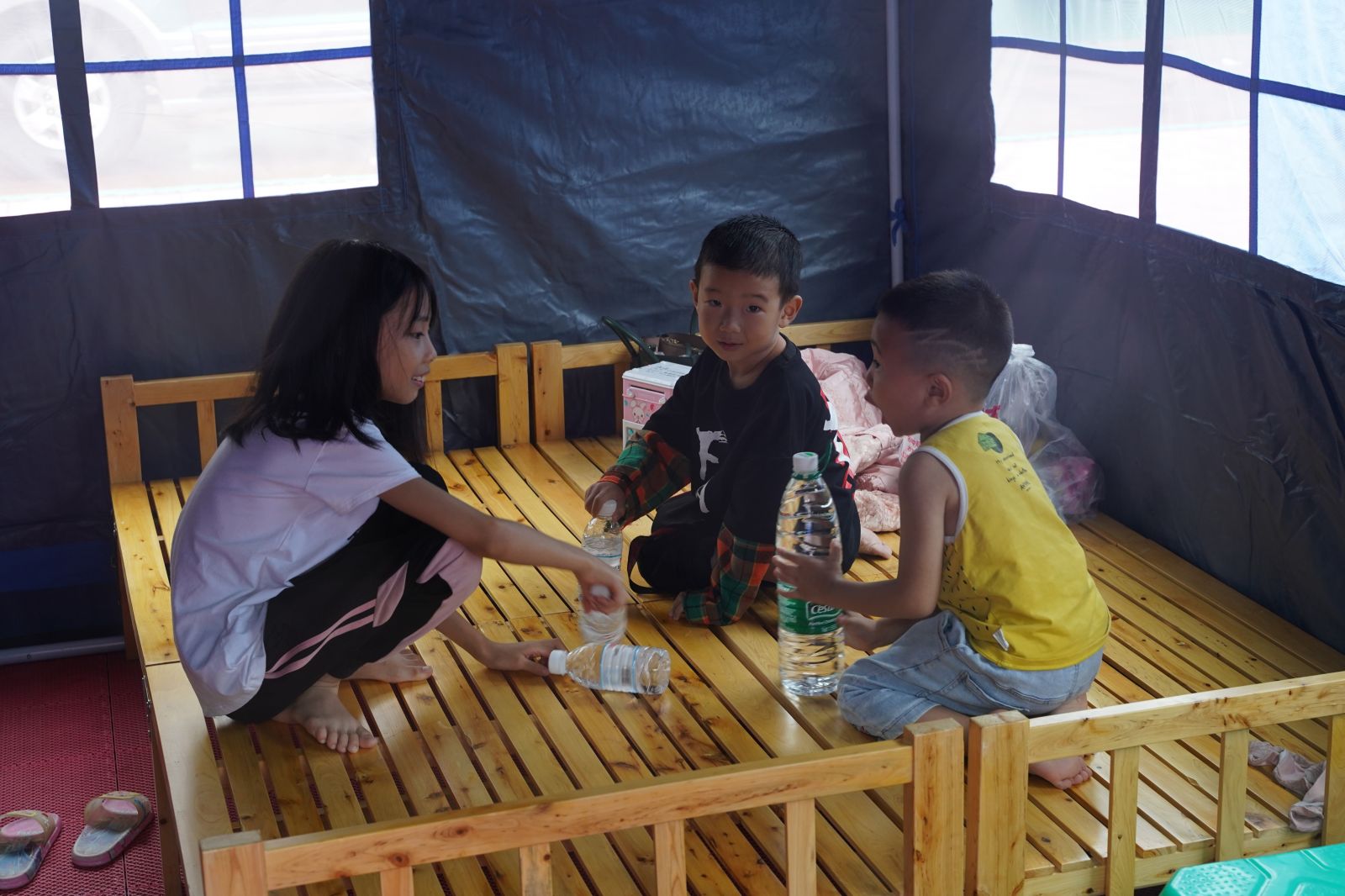 四川泸县地震安置点:志愿者搭建起“帐篷学校”开课啦